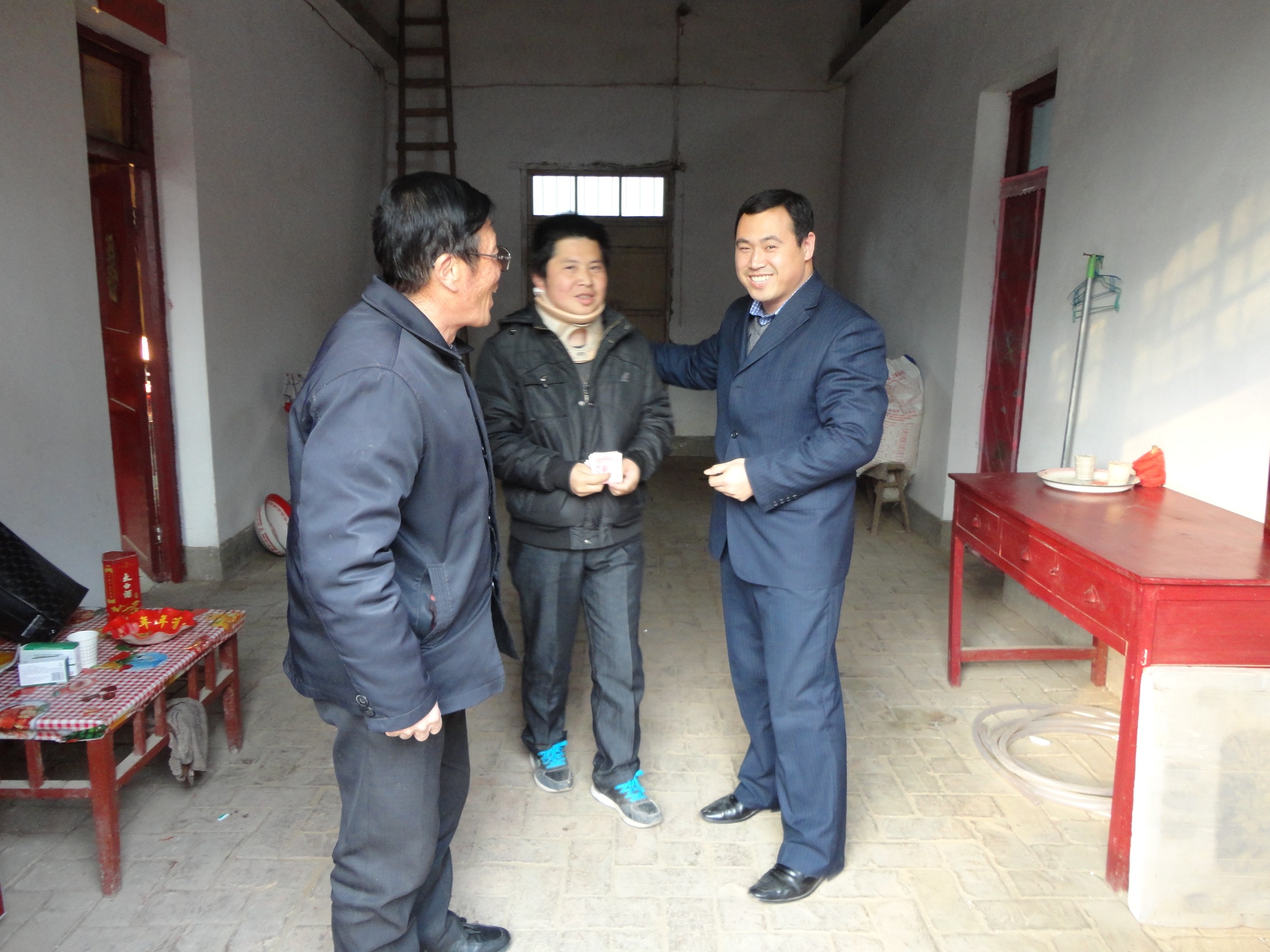 2013年2月3日是农历小年。按照王总的安排,我和杨凌站分站长李爱军一起来到困难员工柏远洋家中,送去总公司发放的1000元春节慰问金和新春祝福。当柏远洋及其家人见到我们时,感激和喜悦之情溢于言表,在寒冷的冬天充满暖暖情意。