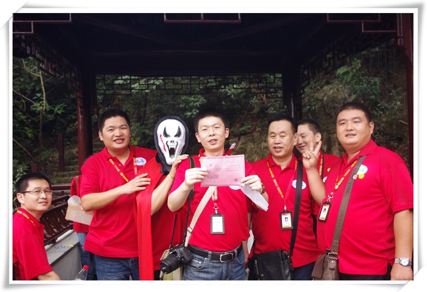 (人力资源部/刘雅玲)2011年10月13日早上08:00我们活动筹备各组人员先行到达穹窿山,在今天的爬山活动中我们一共设了三个关卡:魔鬼、天使和智慧老人。