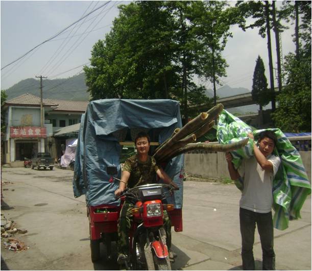 机站已经不能再住了,经过地震的洗礼,墙上,地上已到处都是裂缝。刁磊用竹竿和塑料薄膜搭建起临时帐篷,也就在如此简陋的地方里他还坚持办公。每天晚上余震还在敲击着惊恐的人心,被震垮的房子依旧在不断地往下垮塌。