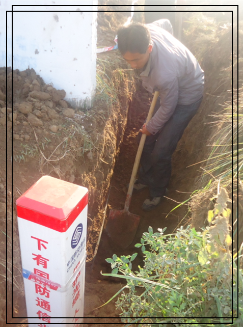 大量的工程机械拥入各个场地,加之我站是一人台站,人少隐患多,故大区一直在分水镇雇佣一名包线员协助看守各施工点,我们每天与施工方负责人保持电话联系2次以上,了解工程状况,使施工方深度意识保护光缆的重要性。同时,分水镇希望小学幼儿园也随之开工,按照施工方设计方案,施工仅距离我司光缆0.5米,经部队和我司人员反复的努力协调下,最终将学校移至3米外施工,确保了线路的安全性。