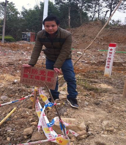 在巡查线路过程中,我发现距离桂林机房1.5公里的部队机房引接缆处,市政工程管理处新建路面工程准备开工,影响我司线路500米。我立即布置好四防,并从施工方那里了解了施工的动向,说明我司的路由情况。同时将该隐患上报维护区,与施工负责人保持联系。施工需要在线路上清理土堆,我便要求施工方人工开挖将路由探出,并做好保护。就这样每天在这500米隐患线路上来来回回的奔跑十几个小时,我不敢放松自己,不管刮风下雨,哪怕是感冒了也要坚守在线路上。就算再辛苦,也要保证线路安全。