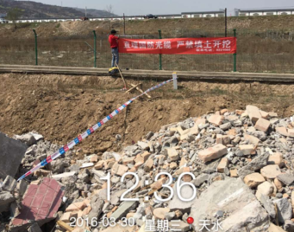 隐患描述:天水市国土资源局二十里铺村委会征收土地,平地填土,影响我方光缆2000米。