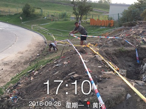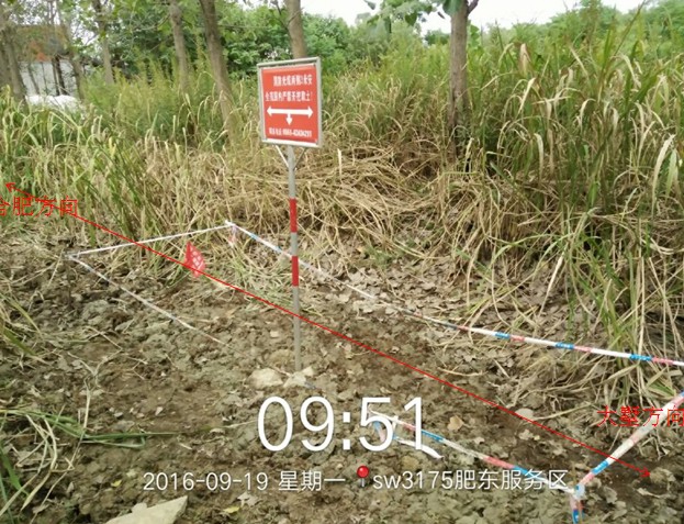 隐患描述:西部国际物流港开挖2000米埋污水管道施工,平行光缆线路2000米。