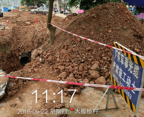 处理方案:确定光缆路由走向,制定光缆保护方案,布设“四道防线”,每日看守跟进施工。