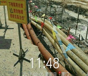 处理方案:要求距光缆5米外开挖,用水泥加钢筋进行保护,布设”四道防线”,每天跟进中。