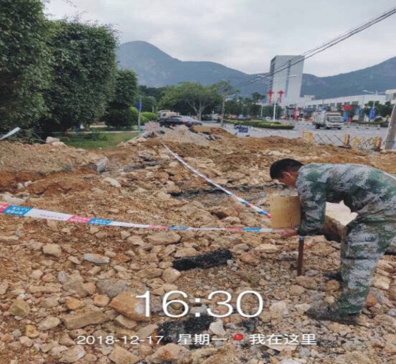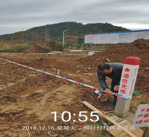 处理方案:探清路由位置、开挖探槽、明确光缆深度并补栽简易标石。布“四防”,与施工方签订安全协议,商议改迁事宜,施工时我司人员必须现场坚守。