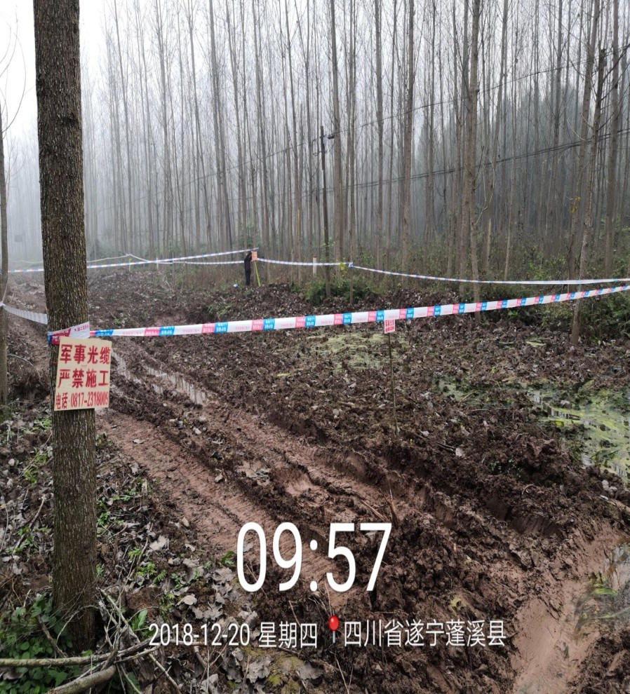 处理方案:利用喷漆和警戒线对线路进行标记;与施工方做好宣传工作,讲明路由走向,签订安全协议;每天现场跟进隐患,增补四道防线 。