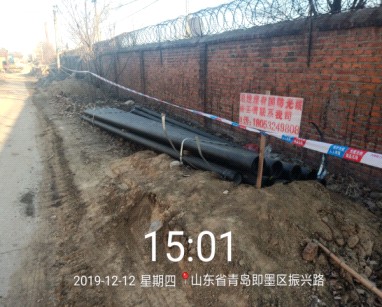 隐患描述:海天水务集团埋设自来水管道,与我司线路交越1处,平行影响我司光缆约1.5公里。