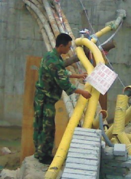 07年至今324省道市政道路扩宽影响本网一干和网通干线长达14公里,总计10座地下人行通道、8座中小桥梁、还有近百处污水、雨水、煤气、电力、通信多种管道与线路交越平行。至今为止雨水管道已大部分完工,煤气已完工、电力、通信一部分完工管道以及7处桥梁也已开工建设。雨水管道工程施工都在晚上进行,施工单位动用了机械施工,由于距离线路较近,为了保证线路安全,只有从晚上9点一直盯到凌晨施工结束。由于工期长达一年,只要晚上线路附近有施工,我们就要到现场看隐患。9处地下通道、7处桥梁对线路影响大,将管道挖出20-30米,提高1-1.5米左右,为保证线路安全,已与施工方协商,利用槽钢对提高的线路进行保护,每处施工点施工方派人专门看守,以防偷盗和人为破坏现象发生。