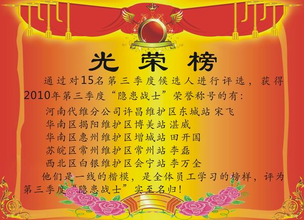| 2010年第三季度隐患战士光荣榜 |