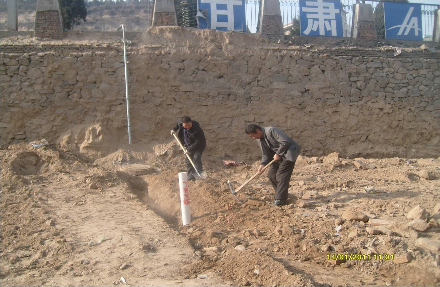 1月19日,已将六百米光缆安全加固深埋。1月28日,县建设局规划二环线及319国道扩宽工程,所涉我方光缆六公里,已有三处架空。由于319国道拓宽四米,我方管道光缆需挖出平移公路四米外,早上七点半我就到现场看守,中午施工人员一点钟上班,我们就在工地上就餐,晚上八点才回到站里。白天要指挥看守工人开挖新修管道沟和人井,来回的奔跑在2公里的线路上,到目前为止我们有效地确保了线路的安全。