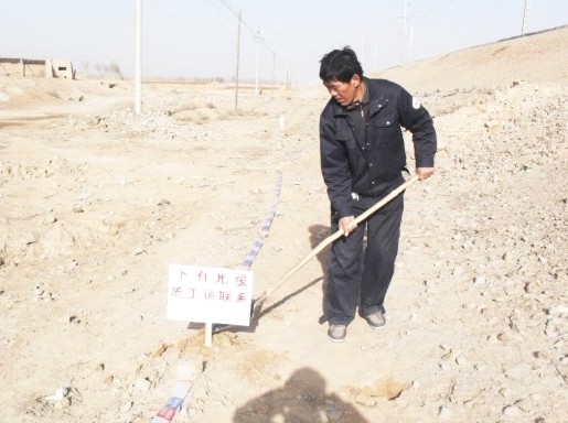 我叫化得鑫,入职缆信已经有2年了,目前任景泰站分站长。本站线路较多,线路施工隐患也多。黄茨水至上沙窝245#-249#标石之间,由于当地施工队在此新建厂房,在我方光缆上方取土施工,影响我方光缆200米。而且施工方赶时间,准备近期就对此处进行施工,加上此处光缆埋深较浅,为了确保线路的安全与畅通,我就配合施工单位探测出我方光缆的具体位置,给施工方以及挖掘机师傅指明路由走向,落实好“四道防线”,一直坚守到施工结束,隐患安全消除,从而确保了通信光缆的畅通。