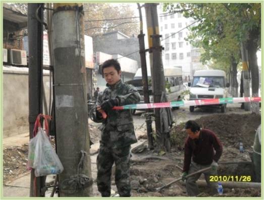 2010年12月11日至2010年12月21日持续了两年多的DN—192云陵开发区一干1.1公里的隐患线路终于实行了迁改,此次线路迁改长度较长,加上原来已经对低洼地带进行了填土,最深的地方达到了近5M,给我们的迁移工作带来了相当大的困难。为了保障施工过程中人员线路的安全,本人及时与部队人员研讨施工方案。双方决定施工时先对工地两头进行开挖,同时让部队提前准备好1.2KM的备缆,做好一切抢修准备工作,以防不测。之后光缆迁移施工开始了,按照预先做好的方案先由我方人员用探测仪对路由位置及深度进行探测,再让工人根据我们的要求进行安全作业,当施工进行到光缆埋深较深地段时,再采用大型挖掘机开挖。通过11天的努力我们终于在于2010年12月21日下午将光缆全部移到了新缆沟中,又一次顺利地完成了移缆任务。