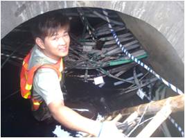 为了避免中暑以及避开上下班高峰时段,每天凌晨1点钟,维护区经理就带领我们穿行在线路上。城市管道人井内臭气熏天,污水、垃圾遍地都是,可这些都没有阻挡我们前进的步伐。管道内光缆众多,为了不挂错牌子,需要一条一条地排查。遇见水多的就用洋镐勾上来,水浅的就穿上下水裤跳下去认真排查。每天任汗水浸湿全身,我们也没有任何怨言,坚持着继续挂牌;到了该吃早饭的时候,从井里爬出来,简单地洗洗,啃几个包子,就继续工作。这就是我们,不被困难打倒的我们。