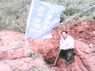 我叫伍朝建,入职缆信已经有9年的时间了,目前在重庆站从事维护工作。随着西南经济的大发展,重庆近几年来加大了机场和轨道交通的建设力度。政府部门开展的机场建设给我们的线路维护带来了一定的影响。目前我站维护的线路有5处隐患,特别是重庆往渝北方向,距机站约41公里处,重庆市机场扩建影响我司光缆5公里,改道后为25公里,为了线路的安全,我积极联系同路由单位与施工方负责人对线路路由进行勘探,在确定线路路由的走向后,我沿线做好“四道防线”。