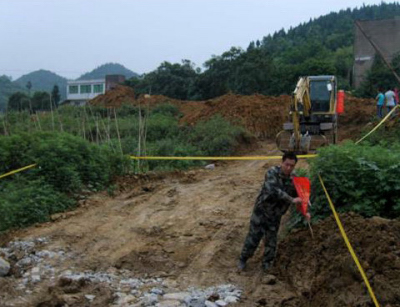 我所维护的线路段要经过市区十几公里的管道,在郊外也有几十公里。机站往坪石方向约500米处,湖南有色金属公司搞房地产开发,挖山修路建房与我方光缆交叉50米,由于城区施工白天严禁挖土运土,晚上挖掘机连夜轰鸣,机械手们白天和夜间不停歇地赶工程进度,任何一次钻探都在危及着线路的安全;市郊外有市区向外扩展的建设施工,如往耒阳方向距机站约13公里处,龙女温泉和造纸厂间107国道改造施工,该处施工现在已经开工两年了仍未完工,影响我方线路约1公里。